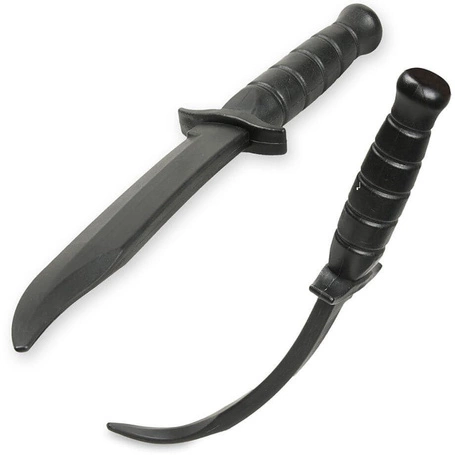 Unser Angebot umfasst Dummy-Messer aus flexiblem, aber haltbarem Gummi. Bei Kontakt mit dem Körper oder anderen Oberflächen verbiegt sich das Gummi, ohne eine Gefahr für die Teilnehmer an Kampfsystemtraining oder Selbstverteidigungsübungen darzustellen. Dies gilt sowohl für diejenigen, die in die Rolle des Angreifers schlüpfen, als auch für diejenigen, die sich selbst verteidigen - das Trainingsmesser ermöglicht es Ihnen, die Absicht eines Angriffs, z. B. Stechen oder Schneiden, zu imitieren, ohne das Risiko eines Stichs oder Schnitts einzugehen.