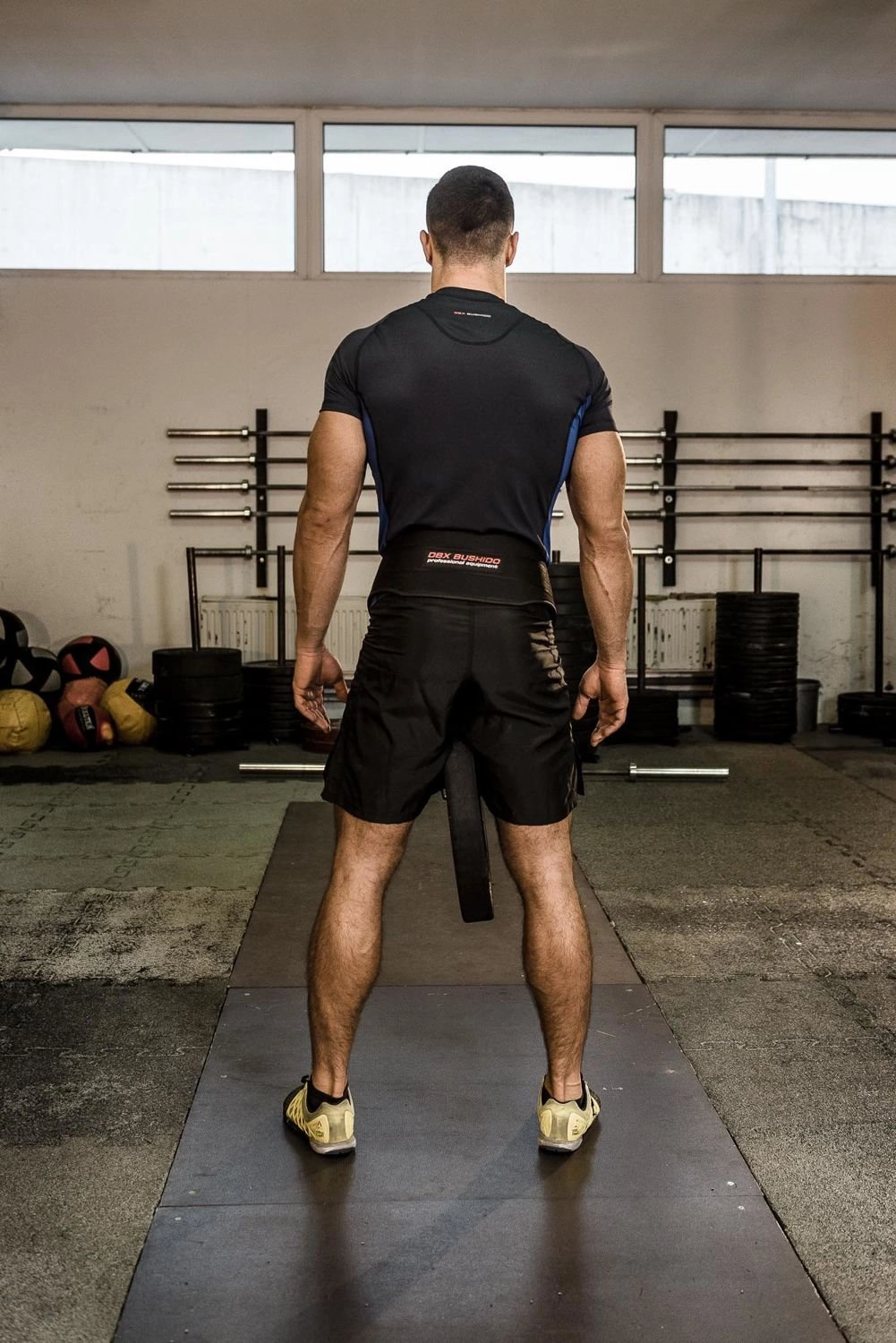 Die Konstruktion des Gurtes gewährleistet seine Stabilität während der Ausbildung. Der Gürtel verrutscht nicht und fällt während des Trainings auch bei schweren Lasten nicht ab.