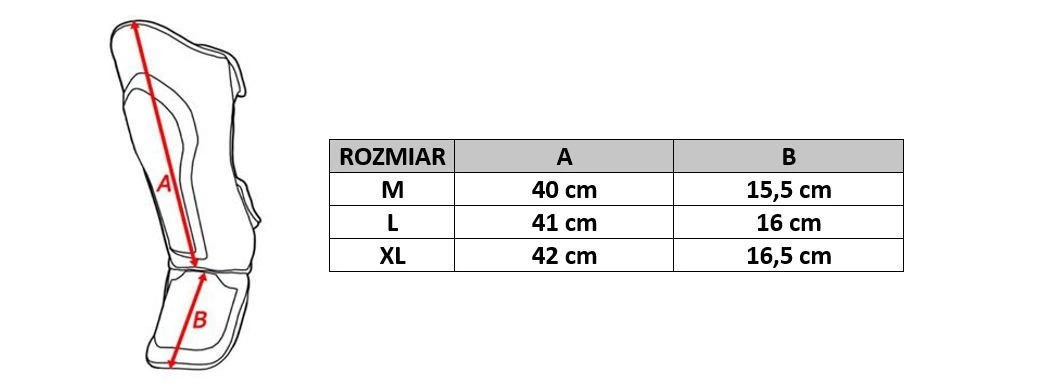 tabela rozmiarow ochraniacze na piszczele DBX Bushido
