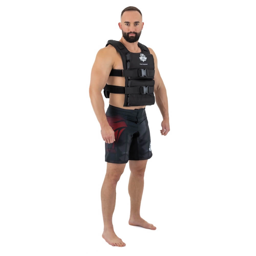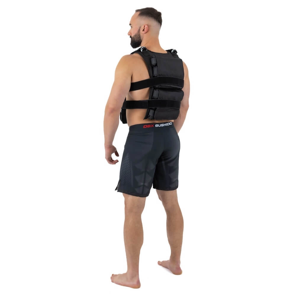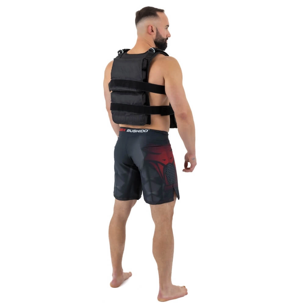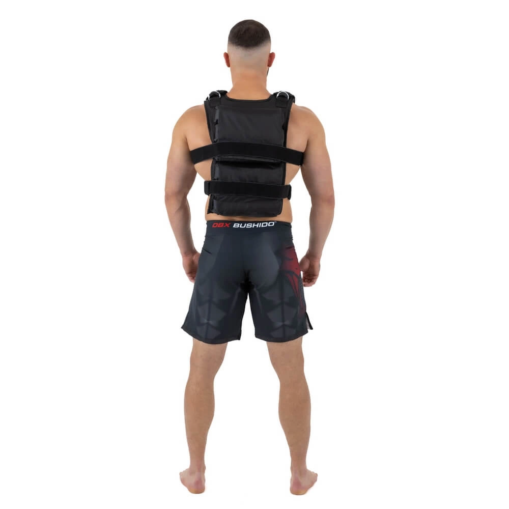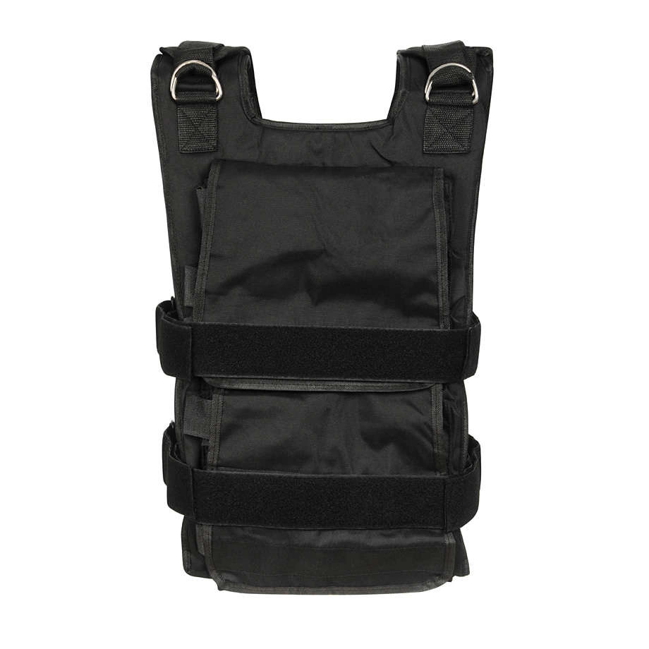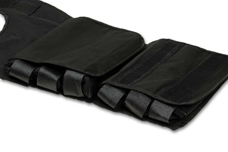 Bei Verwendung von Sand beträgt das Gewicht eines einzelnen Einsatzes nach dem Füllen ungefähr. 1,2 kg, was das Gesamtgewicht der Weste ergibt ca. 16 kg (Summe des Gewichts der Einsätze und der Weste).