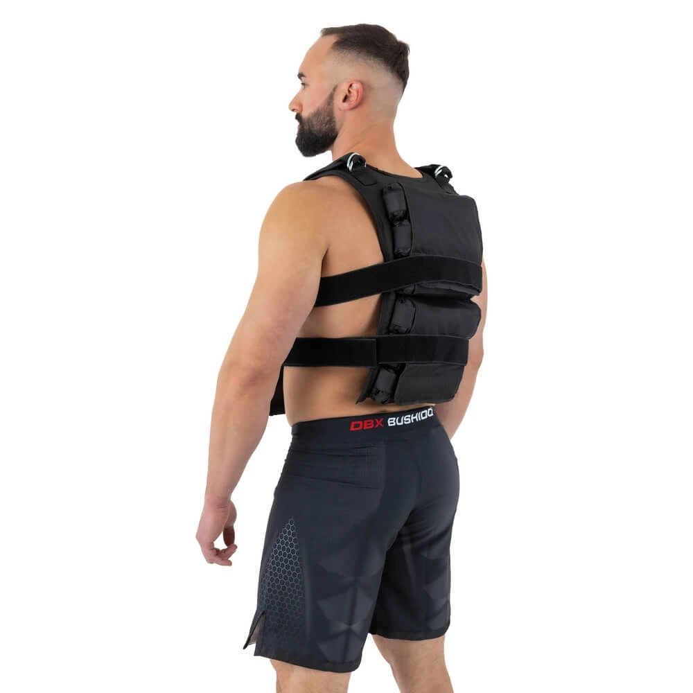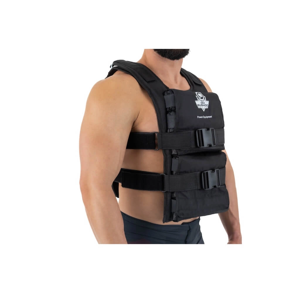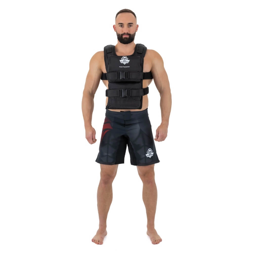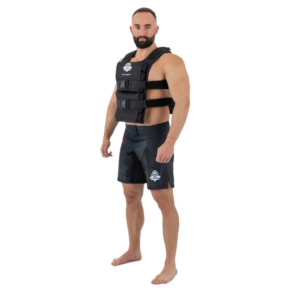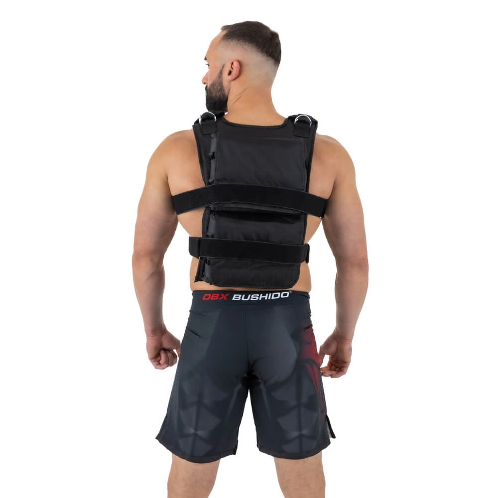 Bei Verwendung von Sand beträgt das Gewicht eines einzelnen Einsatzes nach dem Füllen ungefähr. 1,2 kg, was das Gesamtgewicht der Weste ergibt ca. 16 kg (Summe des Gewichts der Einsätze und der Weste).