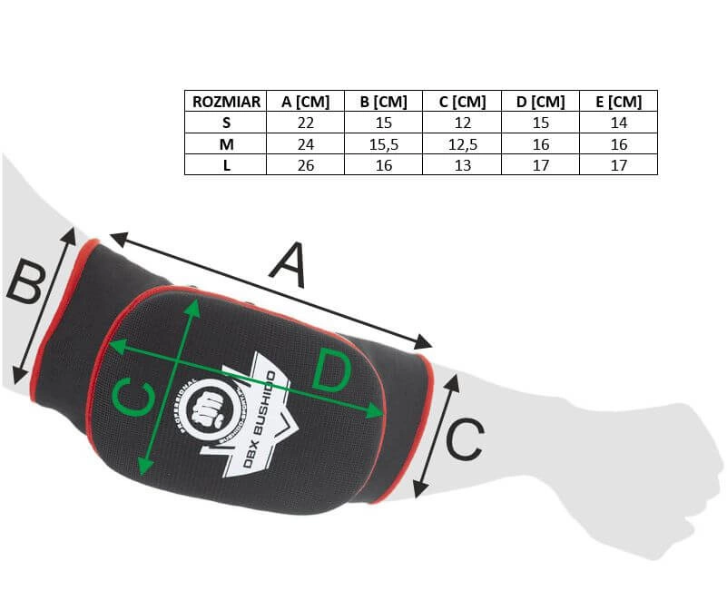 Die Pads sind aus elastischem Material gefertigt - die maximale Dehnbarkeit beträgt etwa 70%, so dass die Größentoleranz sehr groß ist. Je kleiner die gewählte Größe ist, desto mehr Druck übt das Strehlerrad auf den Ellbogenbereich aus.
