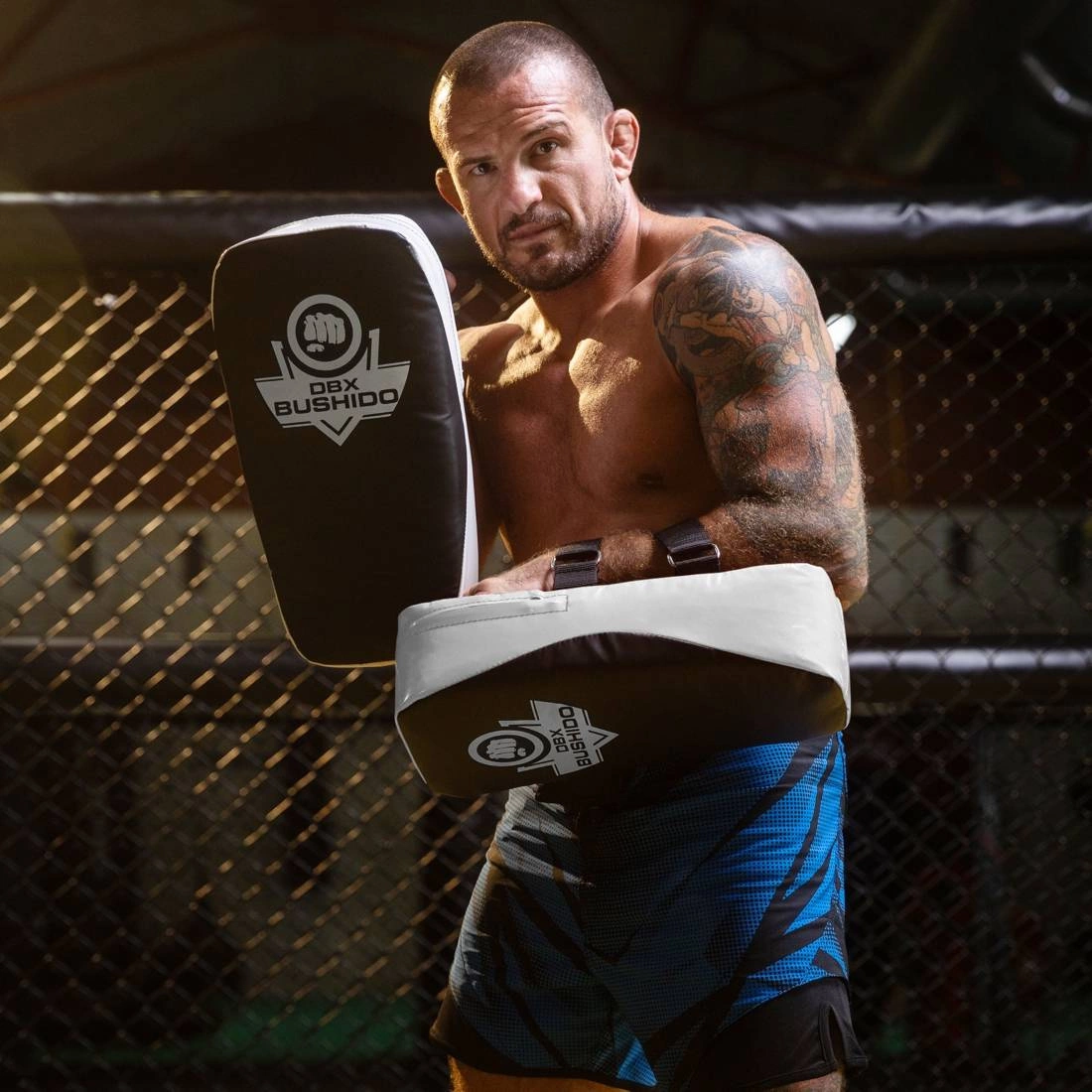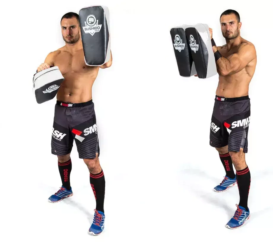 Erweitertes Profil und angepasste Dicke ermöglicht eine komfortable Handhabung von geraden Schlägen und Tritten mit Rotation. Dank seiner kompakten Bauweise kann der Assistent die Position des Schildes sofort ändern, was den Kämpfer dazu zwingt, aufmerksam zu sein und die volle Kontrolle zu behalten.