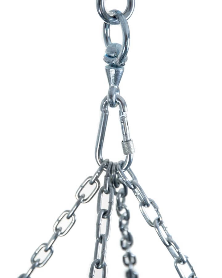 Dieser Sack dreht sich nicht, fliegt nicht und kniet nicht. Aufgehängt an Gurten mit einer Tragfähigkeit von 2 Tonnen, bereit, jeden Low Kick, jeden Haken und jedes Knie wie eine Stahlwand zu ertragen. Mit der Option untere Befestigung - Sie sperren ihn wie ein Tier in einen Käfig.