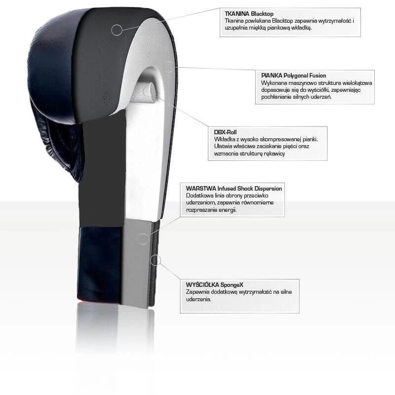 Das doppelte Klettverschluss-System (DBX Double Velcro System®) stabilisiert das Handgelenk, und der DBX-Roll Einsatz unterstützt die natürliche Faust. Das SpongeX Innenfutter erhöht die Haltbarkeit und den Komfort bei langen Trainingseinheiten.
