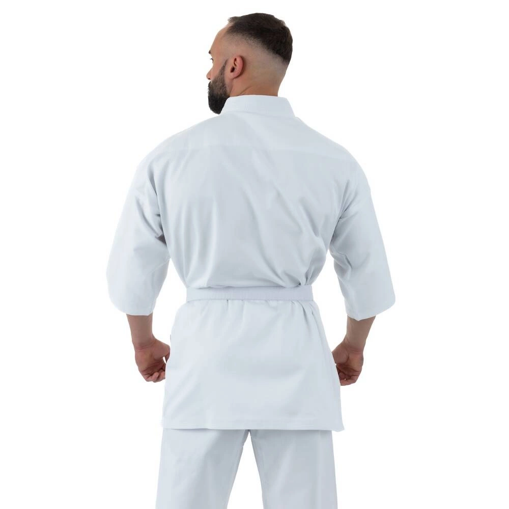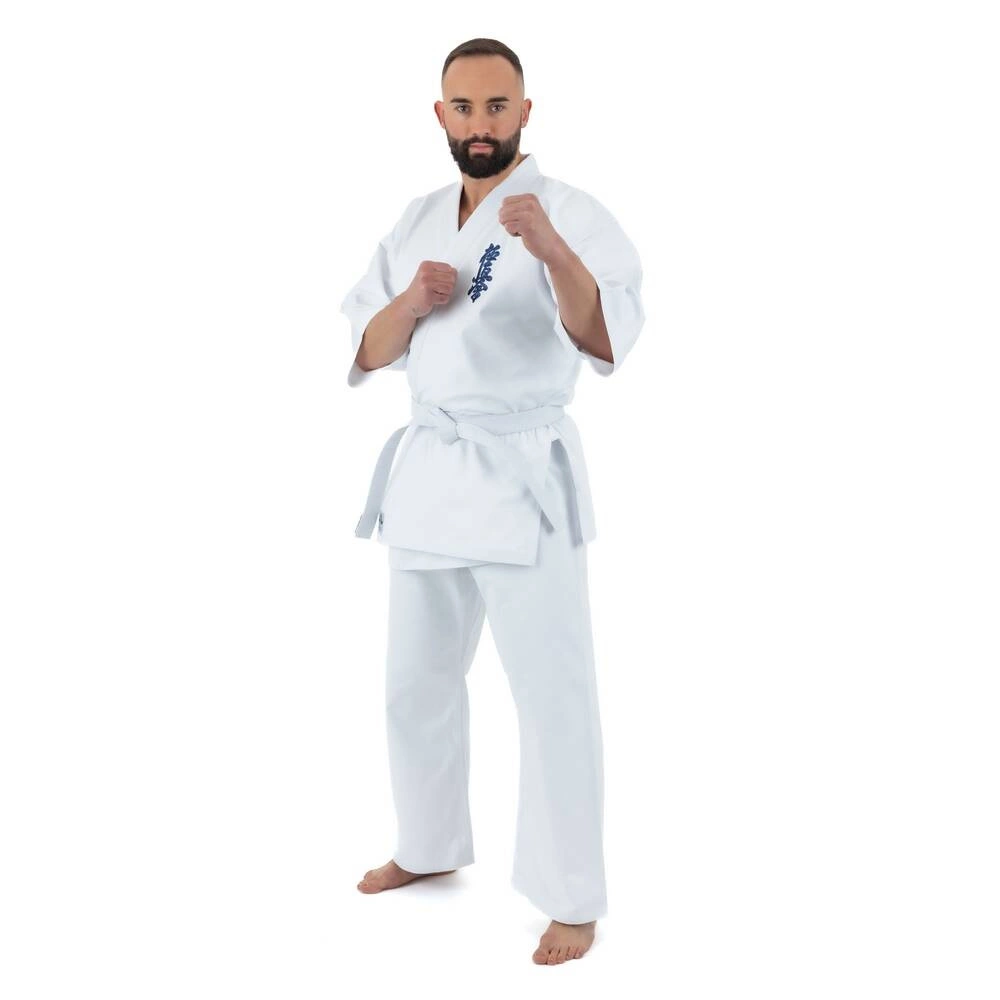 Traditionelles Kyokushin-Design: Die Jacke mit 3/4-Ärmeln und der charakteristischen, marineblauen Kyokushin-Stickerei auf der Brust entspricht der Tradition.
