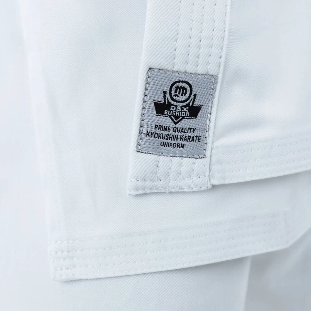 Der Kyokushin DBX BUSHIDO Kimono ist aus hochwertiger, saugfähiger Baumwolle gefertigt, die gegen alle Arten von mechanischen Beschädigungen resistent ist. Ärmelbündchen, Unterseite der Bluse und Hosenbeine sind mehrfach durchgenäht, das eine lange Lebensdauer gewährleistet.
