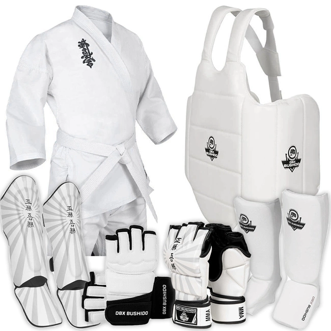 Trening karate Kyokushin wymaga odpowiedniego wyposażenia, które zapewni zarówno komfort, ale i bezpieczeństwo podczas intensywnych ćwiczeń. Kompletny zestaw "Kyokushin Armor" zawiera wszystko, co niezbędne, aby maksymalizować Twoje osiągi i minimalizować ryzyko kontuzji. Dzięki wysokiej jakości komponentom, takim jak kimono, ochraniacz tułowia, goleni oraz rękawice, możesz skupić się na doskonaleniu własnych umiejętności przy zachowaniu maksymalnego bezpieczeństwa.