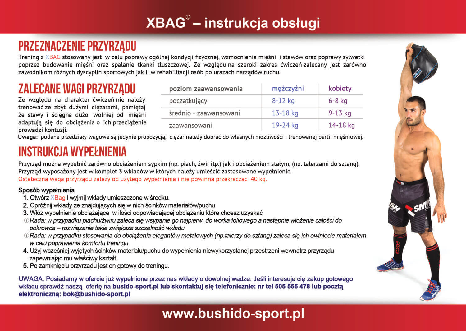 Als Ergebnis monatelanger Arbeit und vieler Tests wurde ein Gerät entwickelt, das die Möglichkeit eines effektiven Trainings für jede Muskelgruppe bietet. Durch die Kombination der Funktionalität der traditionellen Kettleball- und Sandsackgewichte haben wir ein Instrument geschaffen, das eine unbegrenzte Anzahl von Übungen bietet - die einzige Grenze ist Ihr Einfallsreichtum!