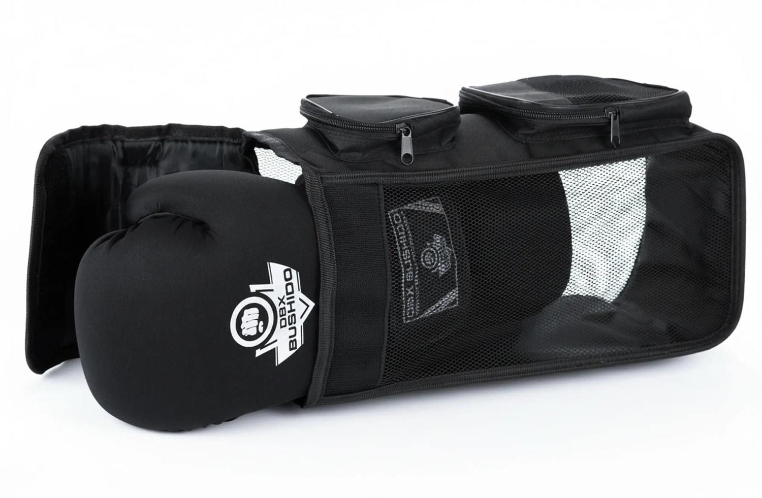 Für Kampfsportler, die ihre Handschuhe und Trainingsutensilien ordentlich an einem Ort aufbewahren möchten – im Gym, zuhause oder in der Sporttasche.