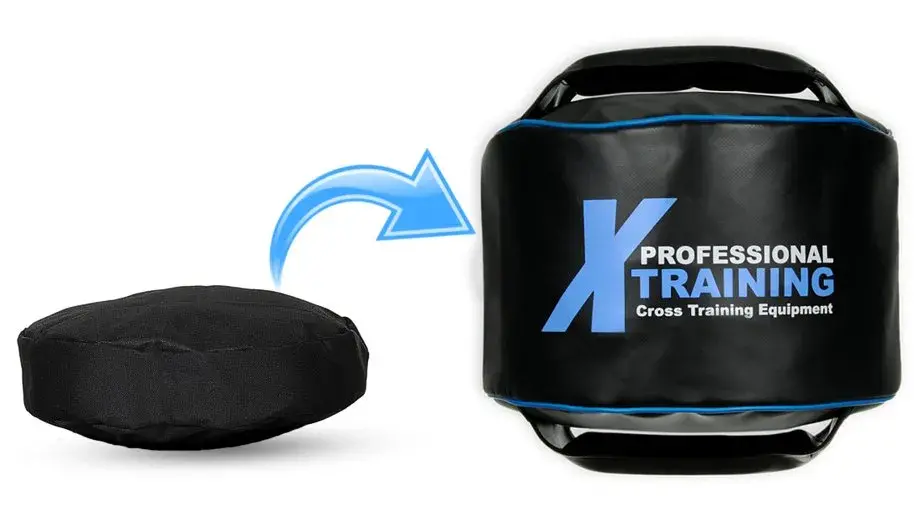 Sie können den Deckel mit einem beliebigen losen Füllmaterial füllen, das Ihren individuellen Trainingsanforderungen entspricht. Die Größe des Deckels wurde so gewählt, dass der XBAG genau gefüllt werden kann.
